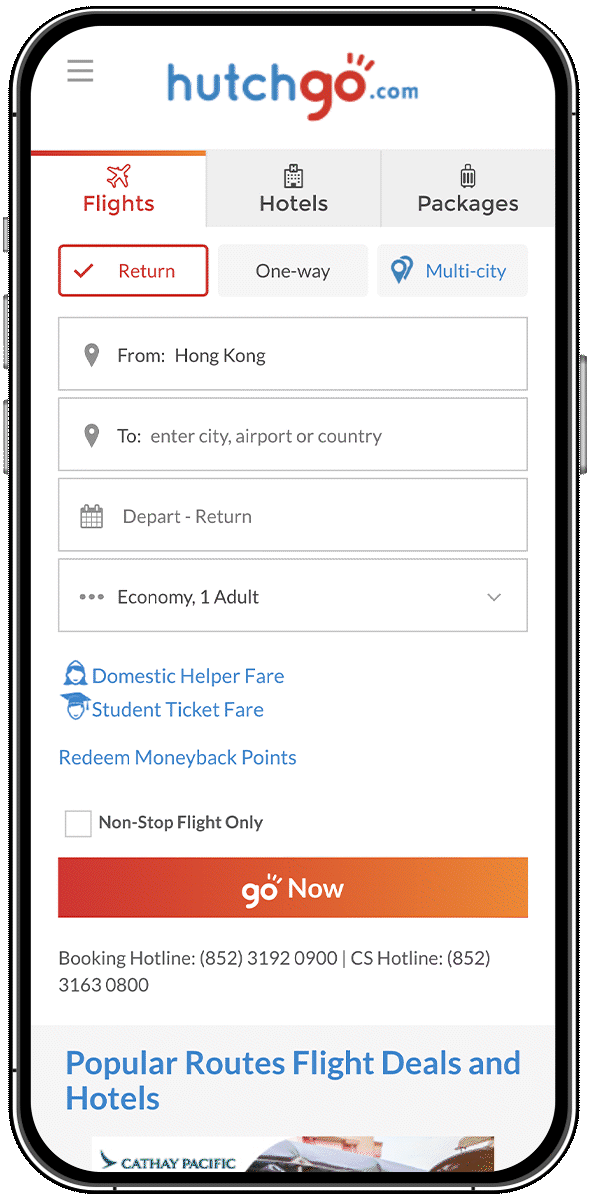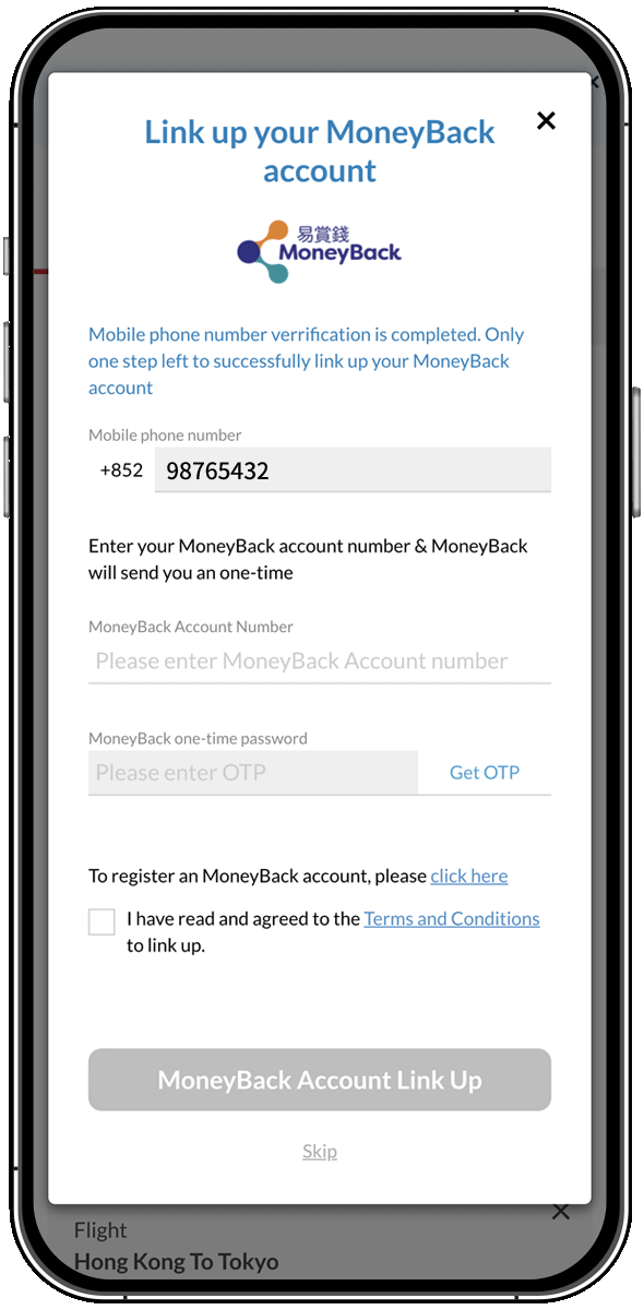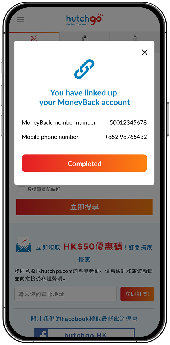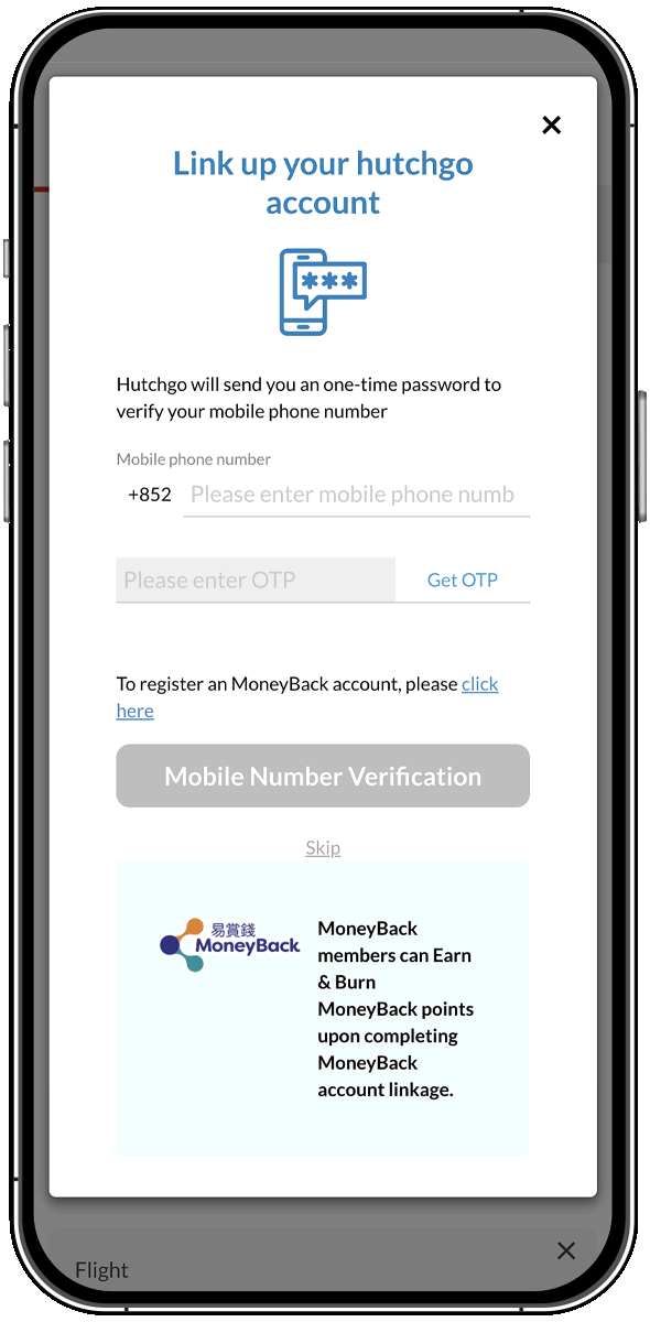 \ Log in hutchgo account and link your MoneyBack account to view HK Express flight ticket offers /