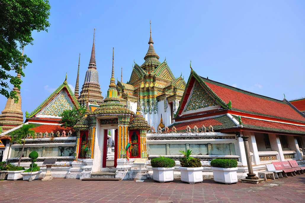 Wat Pho with its colossal pagoda and traditional Thai architecture, attracts many religious pilgrims.