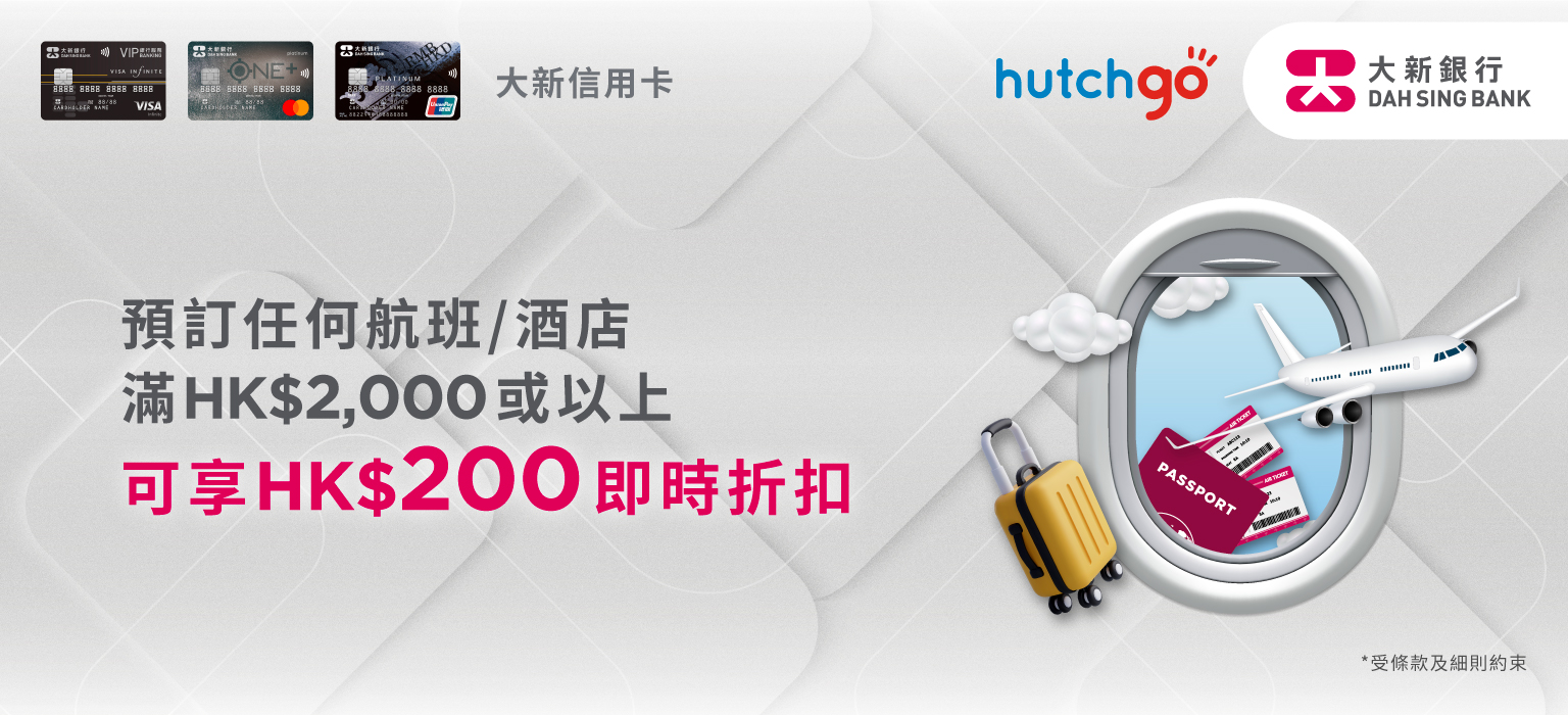 於hutchgo預訂任何航班/酒店滿$2,000並以大新信用卡付款,