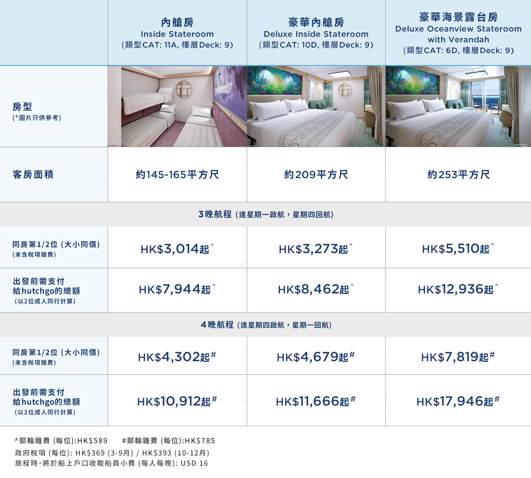 - 如需預訂其他房型及禮賓級客房,請聯絡hutchgo旅遊專員報價 -