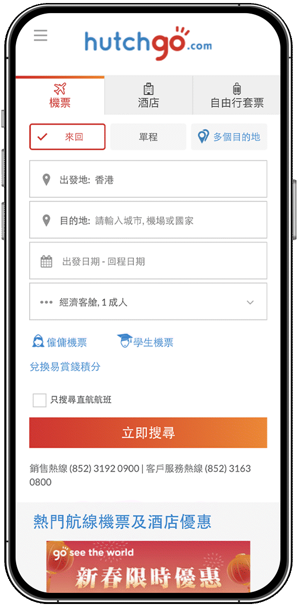 未登入及綁定易賞錢賬戶將無法查看以上活動優惠價,直接搜尋以上香港快運優惠航點將會以原價顯示