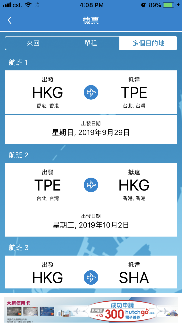 hutchgo 阿編教你如何一次購買多個目的地啦:使用hutchgo.com多個目的地航班搜索工能,跟住以下步驟就得喇!