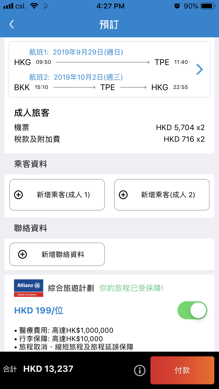 機票詳情: