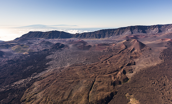 位於茂宜島東部的火山,由於地勢較高,能看到從雲海中冒出的太陽,堪稱為地表上最令人歎為觀止的日出!火山地勢陡峭,泥土呈赤黑銹銅色,讓人彷彿身處火星。因為地形地質跟月球相似,太空人上月球執行任務前,也會先在這裡特訓呢!