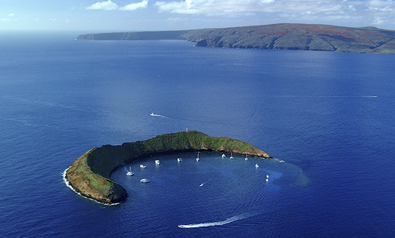 半月形的摩洛基尼島位於茂宜島南部對出海上,是半沉沒的火山口,是熱帶魚類生活的天堂,廣布的珊瑚礁層層疊疊,是熱門的潛水及浮潛勝地。