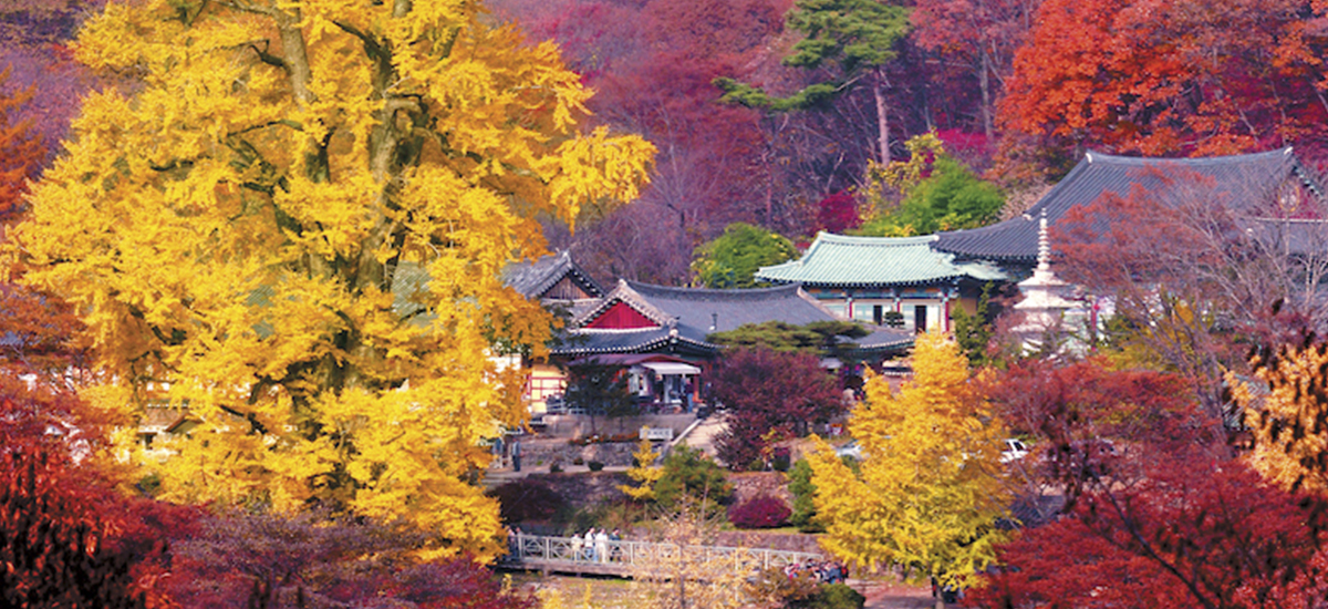 到了秋天,龍門山一片華麗的紅楓萬紫千紅,是讓人怦然心動的名山之一。進入景區後就會見到高達42米的東洋最大銀杏樹,推測樹齡超過1000年,即便歷經戰亂時期,這棵「千年銀杏樹」仍屹立不搖守護著龍門山。很奇妙的是,每到秋天,當所有的樹木全都陸續變色、換裝,這棵「千年銀杏樹」最後才會變成黃澄澄的模樣,就像大地之母在守護著這片土地。許多韓國鄉民認為這棵銀杏樹非常有靈性,所以在這棵樹的周圍,常常會看到寫滿了民眾祈求的心願卡。