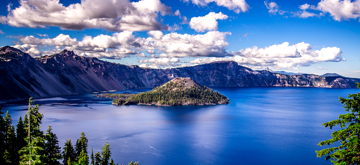 這個公園是由7000多年前火山爆發而形成的。喀斯喀特湖是一個引人注目的藍色原始山湖,是美國最深的湖泊,也是世界上最深的湖泊之一。