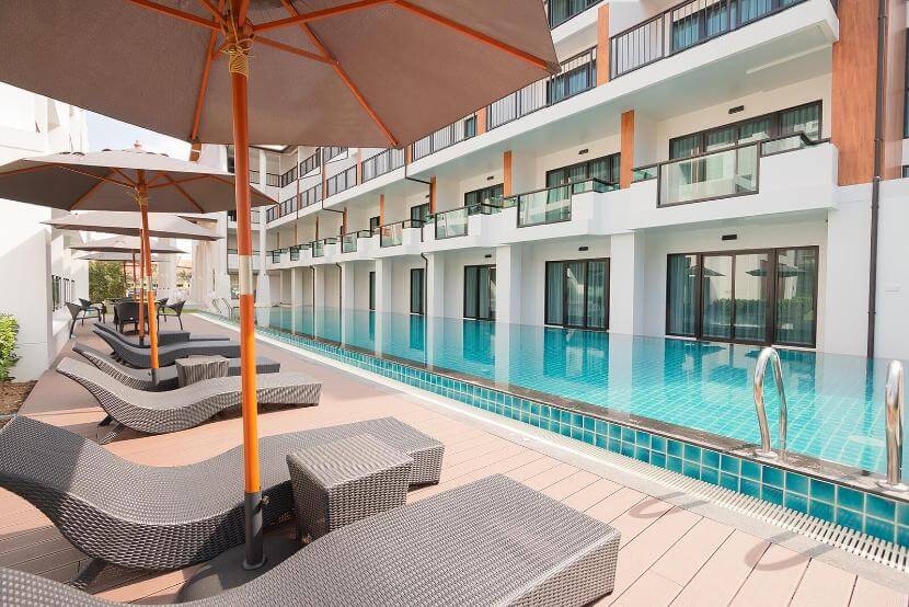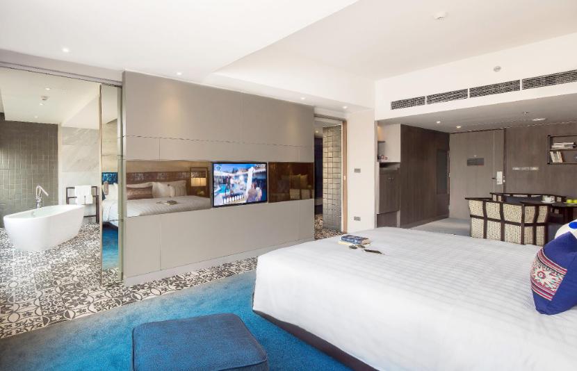 清邁MAYU酒店同時也是一家親子酒店,有提供三人房。房裏空間寬敞,酒店的裝潢更將現代感與泰國傳統文化融合,每間房間都有陽臺和落地玻璃,中庭還有長形游泳池,大家在酒店裏也能盡情打卡!