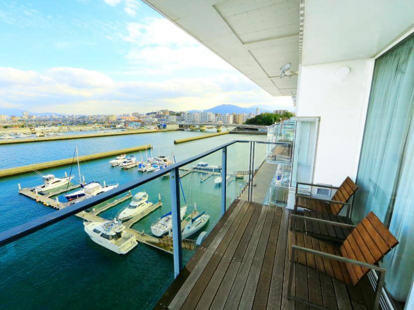 除了能享受寧靜的山景,起床就能看見一望無際的大海也是放鬆身心的不錯選擇。福岡瑪利諾亞度假酒店位於博多灣海邊,擁有大量的海景客房,住客可以坐在寬敞的陽台上或是浴缸中一邊泡浴,一邊欣賞博多灣的海景和遊艇港口。