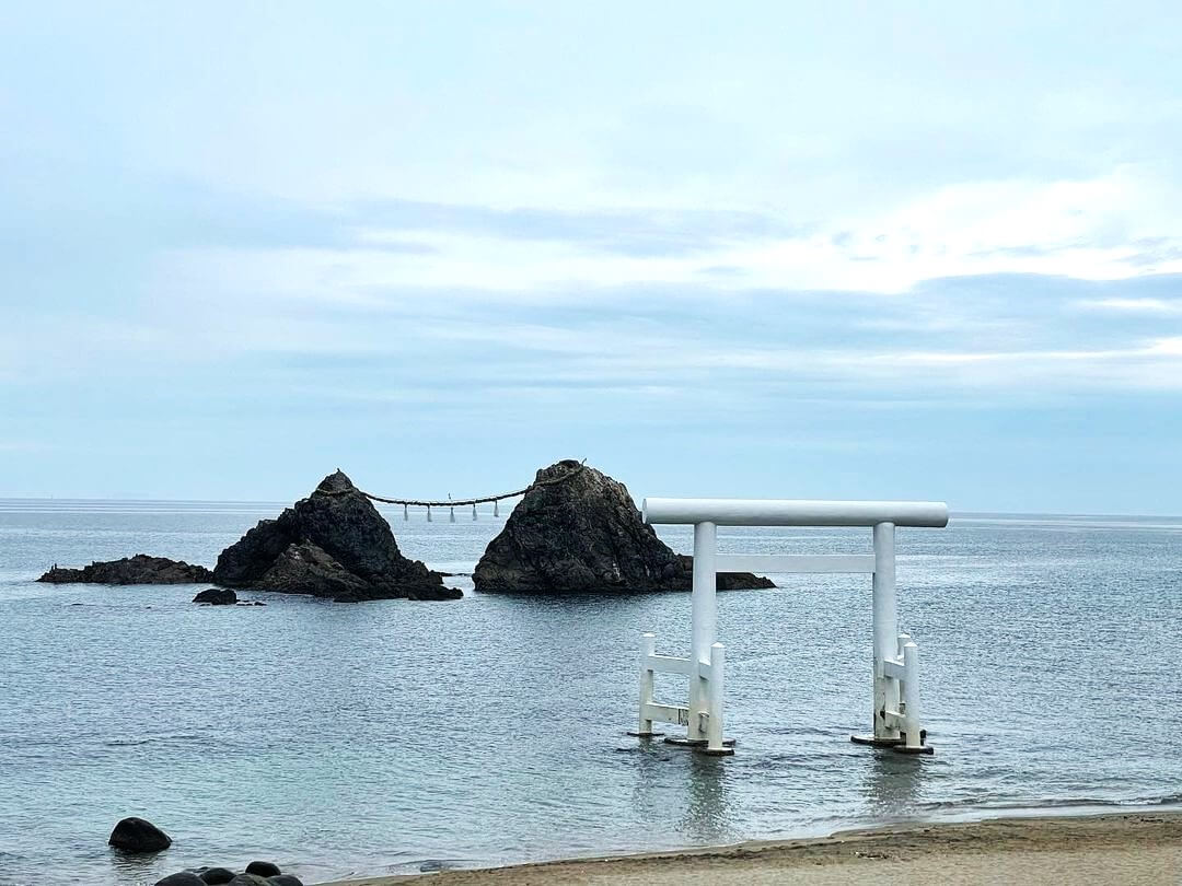 如果想跟另一半享受最浪漫的神社之旅,就一定要去櫻井神社的櫻井二見浦夫婦岩,雪白的鳥居屹立在海上,遠方相對而立的夫妻岩剛好能從巨大鳥居中間出現,加上美麗的夕陽,絕對是最浪漫的日本景點之一,更入選了「日本夕陽百選」排行榜!