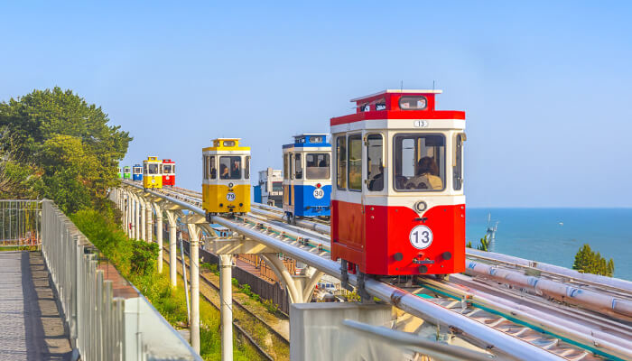 海雲台藍線公園 (Blue Line Park): 必搭的天空膠囊列車和海岸列車,讓你以最浪漫的方式欣賞海岸線風光,是釜山近年最熱門的打卡點。
