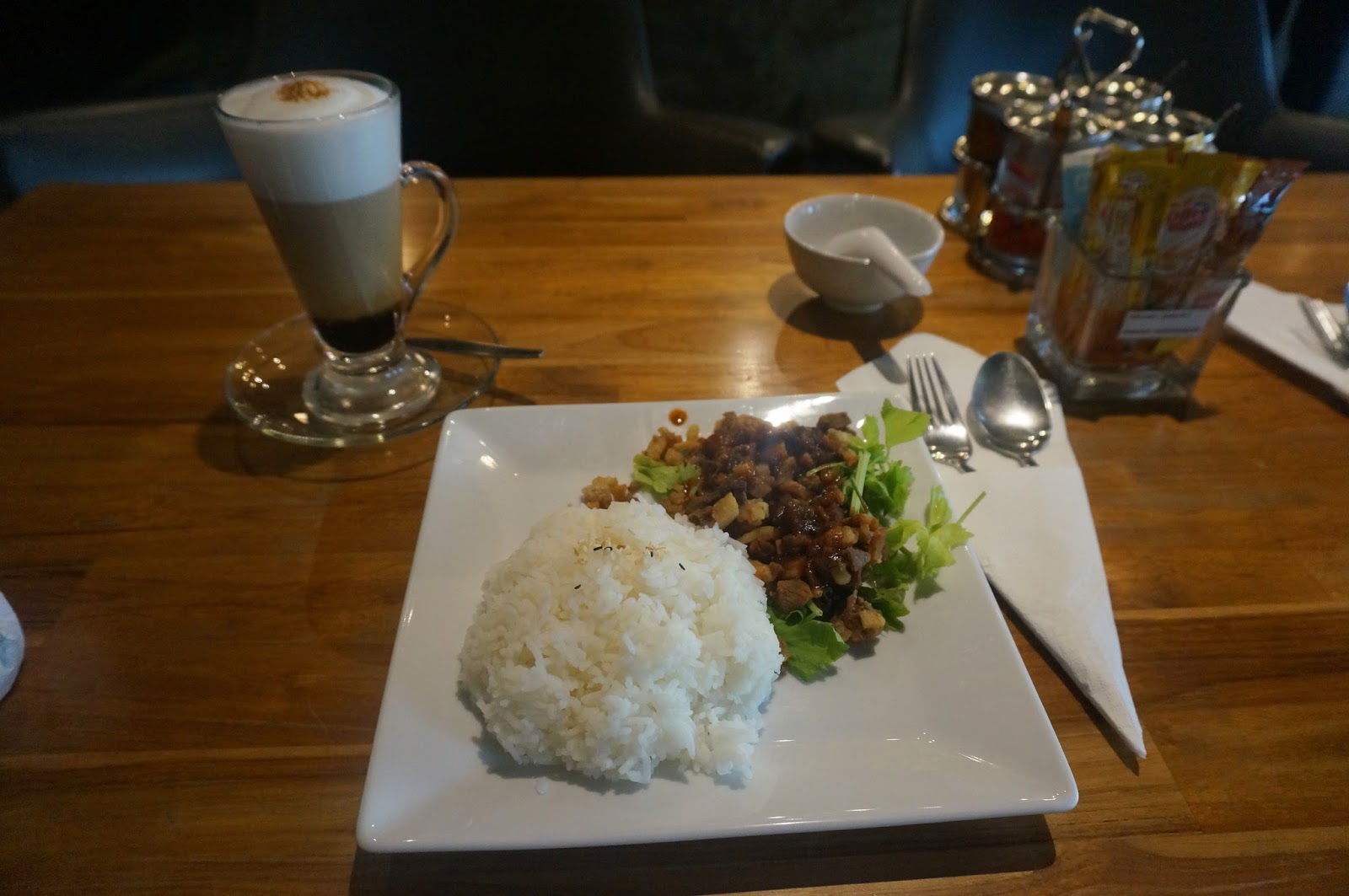 接下來其實已經有點脫離「平價」的範圍了,至少在清邁這不算是很便宜的餐廳就是。不過這家店有冷氣,坐得舒適,還有好喝的咖啡,這個價位是超值了。這家店在很有文青氣色的尼曼路。我們會找上這家店是因為… 原本打算到尼曼路吃個brunch,享受一下慢活的感覺再去做個泰式按摩的。怎知道我們太晚起床而且沒做功課,找了許久都找不到有賣brunch的咖啡廳! 最後隨便search一下最近的餐廳在哪裡,看看評價也不壞就來了這裡。
