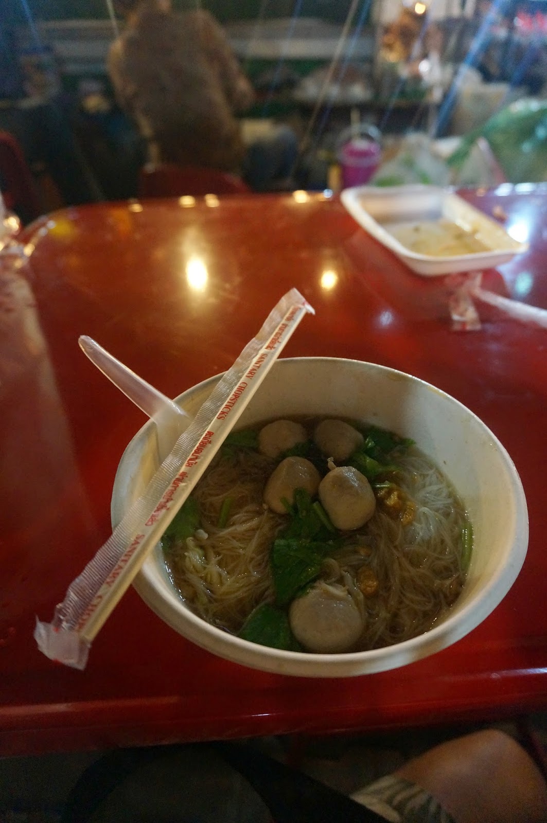最後來到星期六才有的夜市。夜市超大即使不停下來買東西由最頭走到最尾也至少半小時,當中除了有賣物的小攤位外,還有不少大排檔。個人覺得大排檔的粉麵特別好吃,下面這碗便宜得過份的魚丸米帶點甜又微辣,超好吃!好吃程度是,即使在大熱天時三十幾度坐在路邊吃也覺得值得呢。