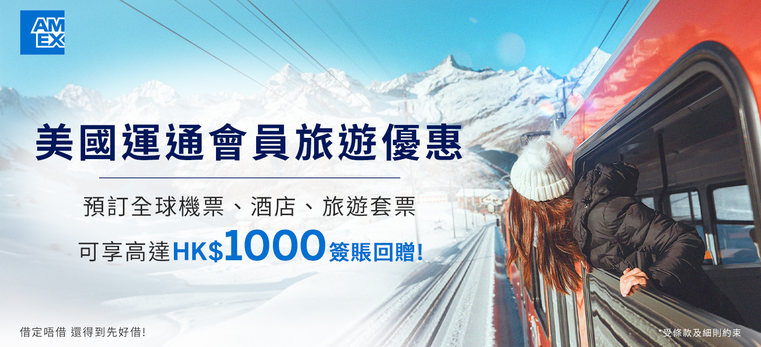 立即到美國運通會員優惠網站登記享HK$1000簽賬回贈!