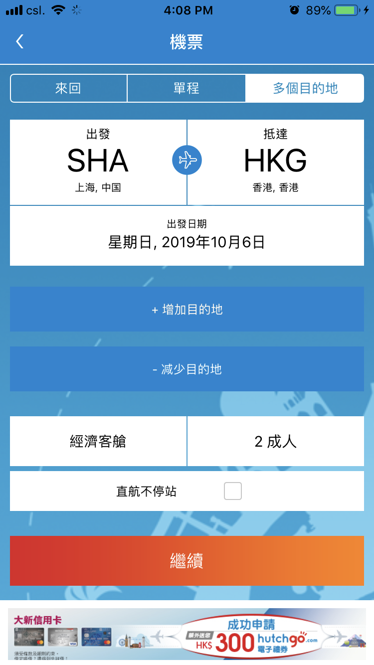 hutchgo 阿編教你如何一次購買多個目的地啦:使用hutchgo.com多個目的地航班搜索工能,跟住以下步驟就得喇!