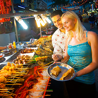黃昏時份最適宜聯群結黨「掃街」,當地人推介的包括有葡式魔鬼魚 / 黃阿華炭燒雞翼、 沙哆串燒、蝦面、叻沙、咖哩魚頭、肉骨茶……等美食。