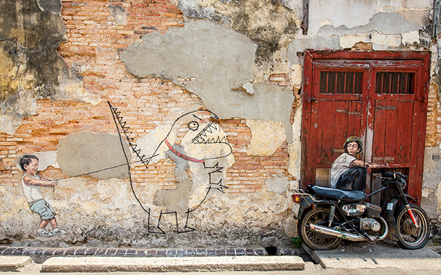 檳城除了被列為“世界文化遺址”,遍布檳城古城區的壁畫也名聞遐邇 知名立陶宛藝術家 ERNEST ZACHAREVIC 創作的“MIRRORS GEORGETOWN” (喬治鏡像)系列隱藏在喬治市各個街頭小巷,畫風擬真呈現出檳城迷人街角,同時也可以找到當地藝術家的壁畫和街頭裝置藝術作品。